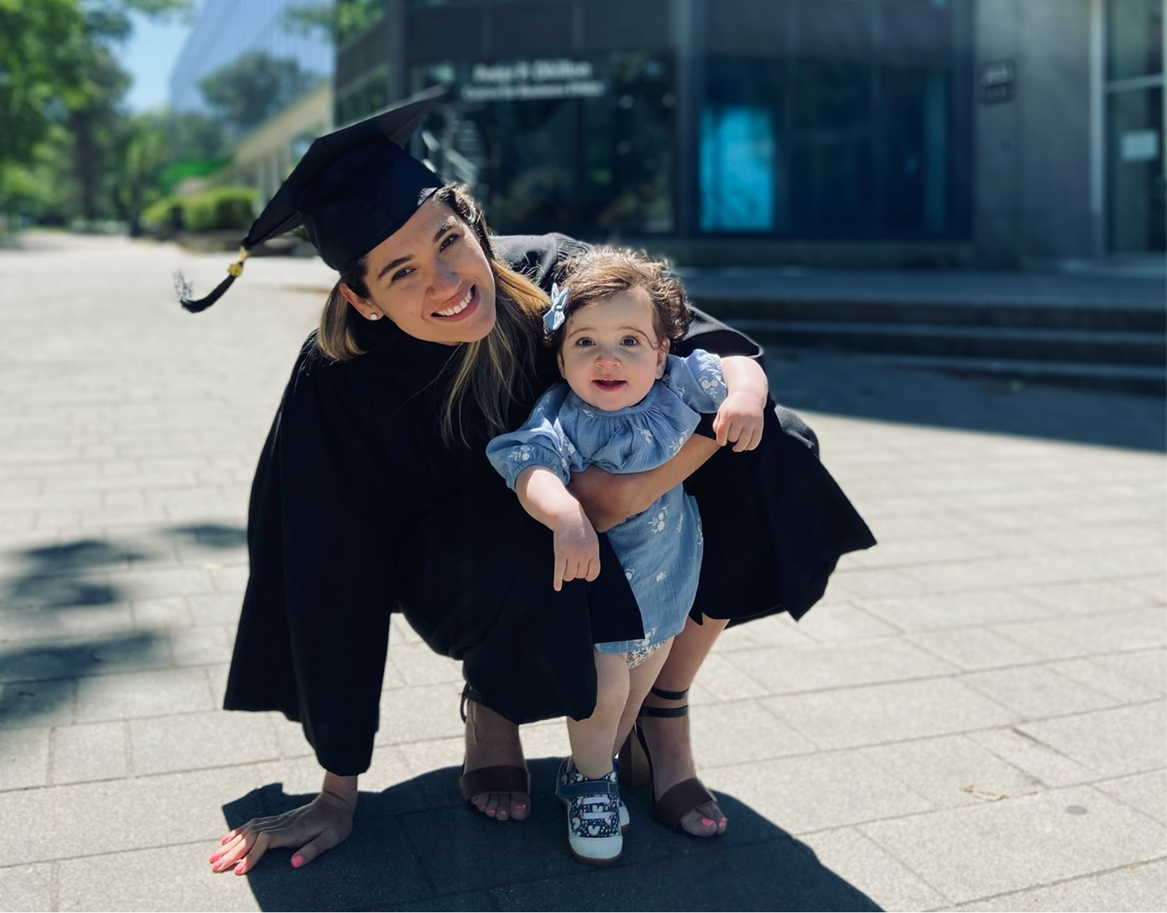 Del Castillo was expecting her first child while taking PMBA classes and her daughter was born a few months before she finished the degree. Though she was initially nervous about becoming a parent while in school, Del Castillo says that the PMBA helped her retain a sense of identity while undergoing such a significant life transition.